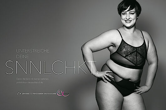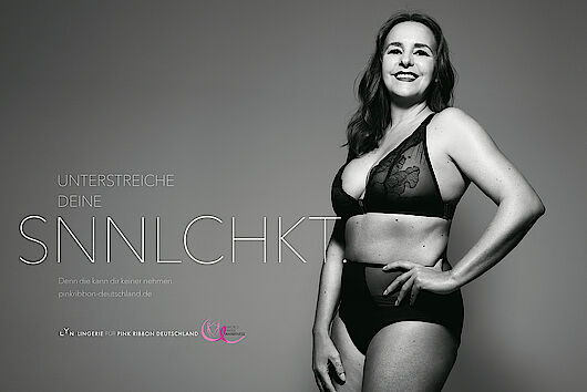 Die Agentur BBDO in Düsseldorf und Rankin haben gemeinsam mit uns diese außergewöhnliche Kampagne entwickelt. Am Anfang stand die Frage: Wie macht man Frauen Mut, die durch den Brustkrebs eine oder beide Brüste verloren haben? Durch mutige Vorbilder! Fünf Frauen zwischen 32 und 47 Jahren geben ihre persönliche Antwort: „Was bedeutet eigentlich Weiblichkeit?“ Für die meisten Frauen, aber insbesondere nach einer Brustkrebserkrankung, sind die Brüste wichtiges Attribut im femininen Selbstverständnis. Sie werden assoziiert mit Schönheit und Sinnlichkeit. Doch ist es die weibliche Brust, die Frau-Sein ausmacht?