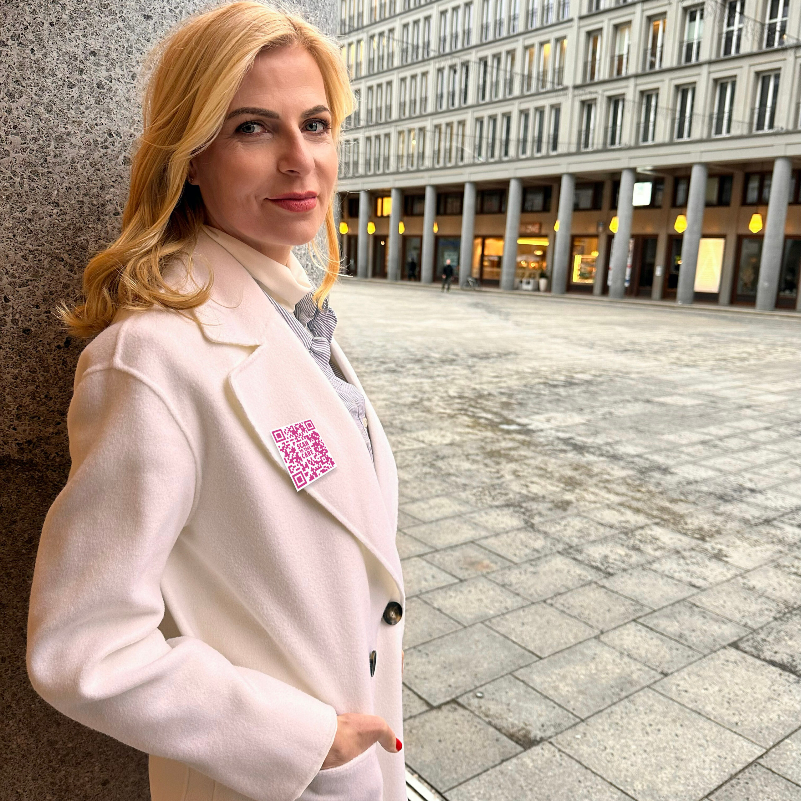 Du möchtest unsere Kampagne unterstützen? Ganz einfach: indem du dir ab dem 8. März 2024 zum World Women‘s Day den QR-Code an deine Brust heftest. Egal ob du ihn als bedrucktes Shirt oder als Aufkleber in Brusthöhe auf deiner Kleidung trägst, als Giphy auf einem Beitrag platzierst bzw. als digitalen Sticker auf deinem Social Content verlinkst.