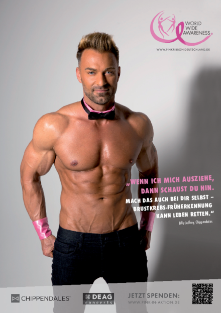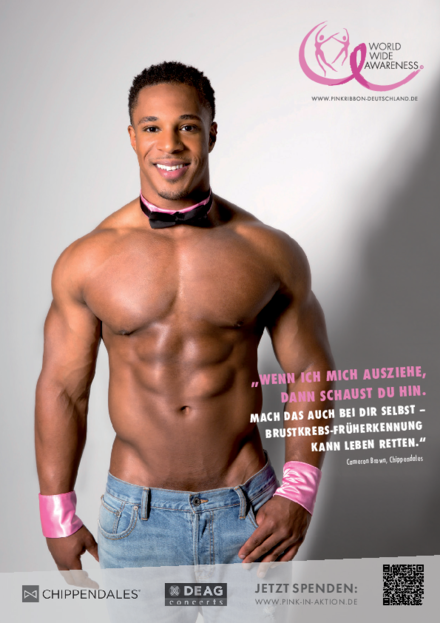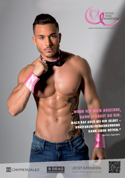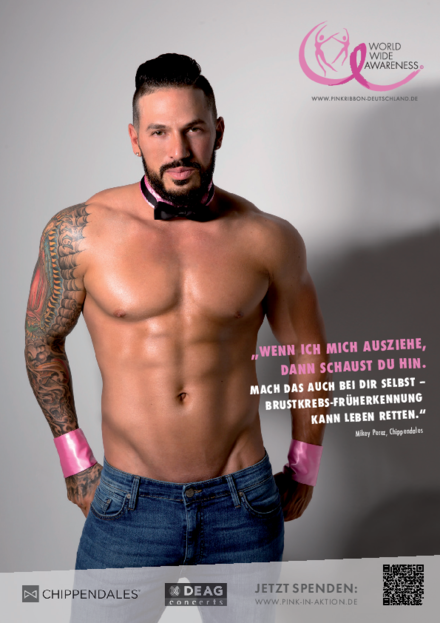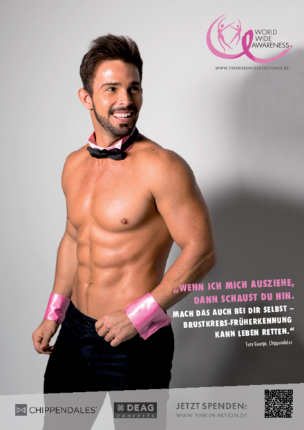Im Herbst beweisen die Chippendales, dass hinter ihnen noch mehr steckt als heiße Körper und Spaß: Bei ihren Shows in Deutschland tauschen sie die Farbe ihres Markenzeichens, der berühmten "collars and cuffs“: Anstelle des klassischen Schwarz tragen sie auf der Bühne leuchtend pinke Manschetten, um auf den Brustkrebsmonat Oktober und auf die wichtige Bedeutung der Brustkrebs-Früherkennung aufmerksam zu machen. Die Chippendales kooperieren dabei mit Pink Ribbon Deutschland, den Initiatoren der bundesweiten Kampagne.